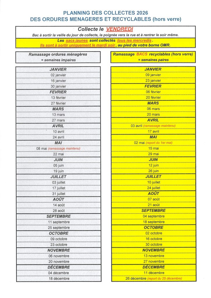 Elles sont collectées les semaines impaires, le vendredi matin.