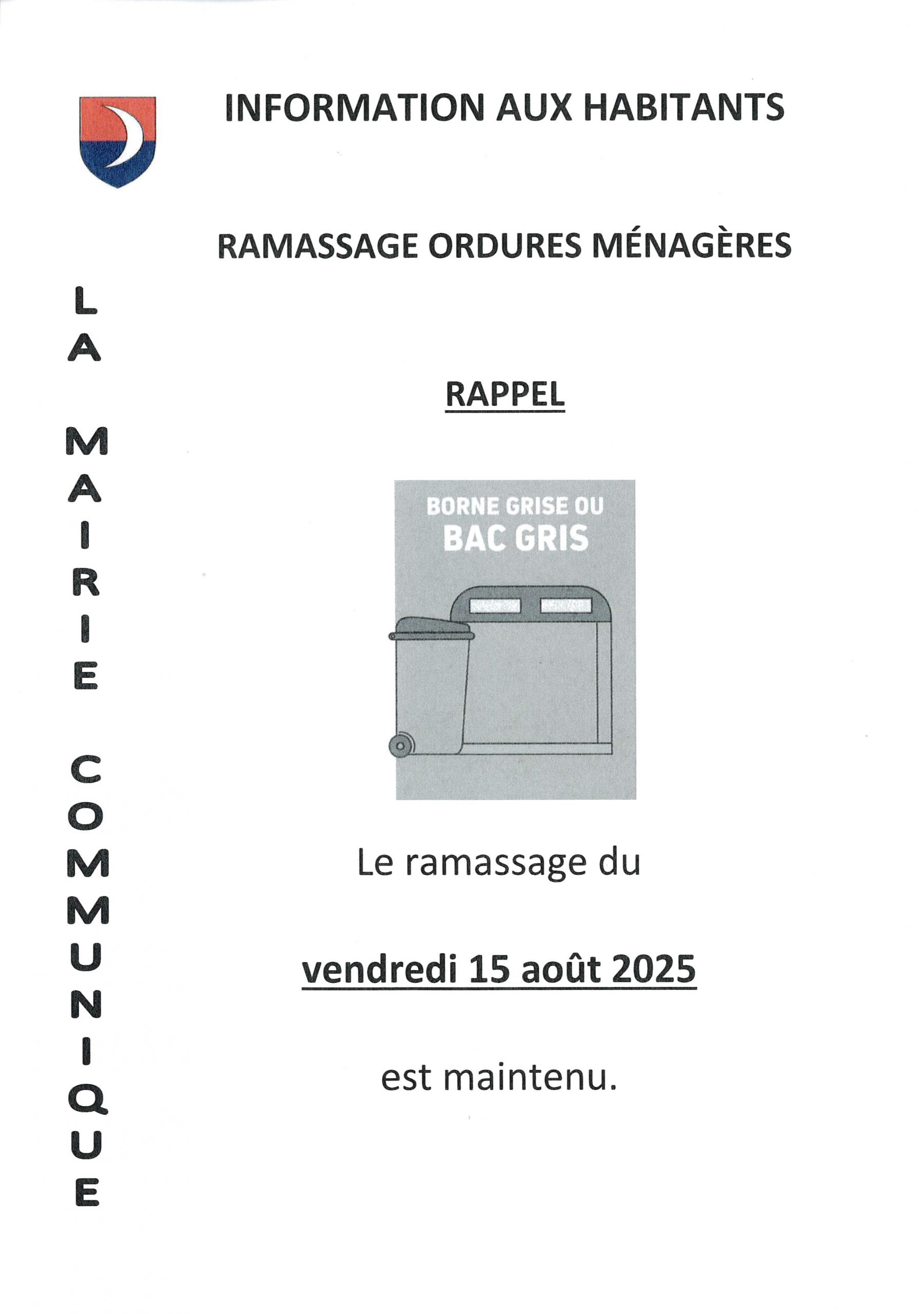 Lorsque les conteneurs des deux sites sont pleins, ce qui arrive rarement, veuillez ramener vos déchets chez vous. Ne les laissez pas à côté, ce n’est pas beau et vous donnez du travail inutile aux ouvriers communaux.